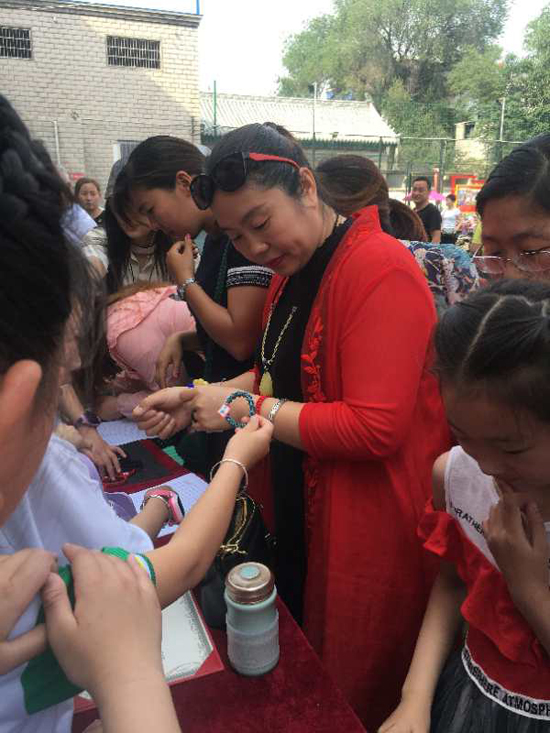 5月25日上午,沈丘縣中國結(jié)第七代傳承人李?;ㄗ哌M(jìn)槐店鎮(zhèn)回民小學(xué),和學(xué)校“中國結(jié)”手工編織興趣班的20名學(xué)生舉行“愛心義賣,情暖校園”主題活動。不到半小時(shí),100多件作品被搶購一空還預(yù)定了很多。據(jù)悉,這次義賣共得到1200余元,將全部捐給“槐店鎮(zhèn)中心學(xué)校教育基金”,用來資助該鎮(zhèn)經(jīng)濟(jì)困難師生、獎勵(lì)優(yōu)秀教師和學(xué)生、資助教育教研等重大活動項(xiàng)目。