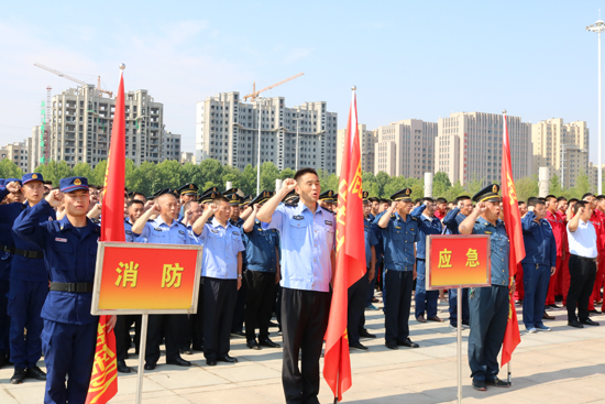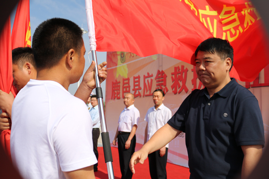 5月30日上午,鹿邑縣在縣文化中心廣場舉行應(yīng)急救援隊(duì)授旗宣誓儀式,縣委常委、常務(wù)副縣長陸志杰現(xiàn)場為全縣新整合的15支專、兼職應(yīng)急救援隊(duì)伍授旗,各應(yīng)急救援隊(duì)伍在推選代表的帶領(lǐng)下,共同舉起右手進(jìn)行了莊嚴(yán)的宣誓儀式。