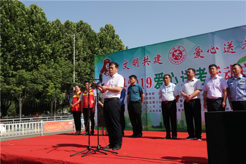 六月麥?zhǔn)焓锵?,愛心送考又起航?月4日上午,由太康縣委宣傳部、縣文明辦主辦,縣委網(wǎng)信辦、縣城管局、縣住建局、縣教體局、縣公安局、縣文廣旅局承辦的“文明共建 愛心送考”公益活動正式啟動??h委常委、宣傳部長謝成營出席活動并講話。