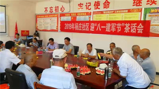 7月27日,在王一博、趙玉超同志的帶領(lǐng)下,辦事處全體班子成員帶領(lǐng)駐村干部帶著慰問品和慰問金,到各自分包社區(qū)開展走訪慰問活動,在不漏一戶、不落一人的慰問要求下,全體干部不畏酷暑,把黨和政府的關(guān)懷及時送到退役軍人家中。楊莊社區(qū)94歲的退役軍人楊計得退伍后,熱心公益事業(yè),樸實純粹、淡薄名利,慰問結(jié)束后,他緊緊拉住辦事處干部的手飽含熱淚,動情地說:感謝共產(chǎn)黨,感謝黨和政府的關(guān)懷,現(xiàn)在縣里發(fā)展那么好,如果再年輕十歲,我還為社區(qū)發(fā)展貢獻自己的力量。