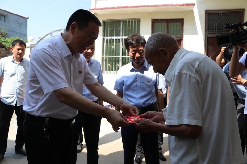 在蔣橋村王方正家,閆立超同他進(jìn)行了親切地交談,詳細(xì)詢問他現(xiàn)在的生活情況。看到他身體健康,閆立超非常高興,祝福他健康長壽,并囑咐其家人一定要照顧好老人。據(jù)介紹,王方正是解放戰(zhàn)爭老復(fù)原軍人,參加過淮海戰(zhàn)役等戰(zhàn)斗,現(xiàn)年91歲。