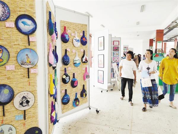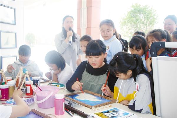 鄲城縣數(shù)萬名小孩子的暑假是多彩的,特色補(bǔ)習(xí)班、校園文化節(jié)、外出游山水等等,特別是校園文化節(jié),讓孩子們在手工制作、音樂、圖畫、舞蹈等方面各顯所長,并讓孩子們開闊了眼界。兩圖均為鄲城縣第二實(shí)驗(yàn)小學(xué)校園文化節(jié)現(xiàn)場。記者 徐松 攝