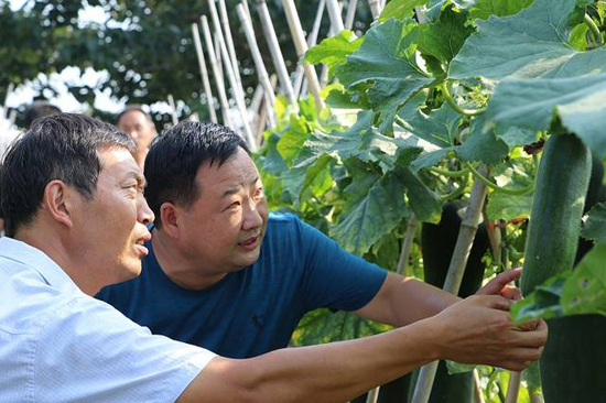 炎炎夏日,大棚下的侯俊昌汗水再次濕透,他撫摸著一串串紫紅色的葡萄說,這都是改變貧窮的“紫珍珠”啊,只要我們班子上下齊心協(xié)力,小小的葡萄也能幫我們“拔掉窮根。”不僅僅是葡萄產(chǎn)業(yè),村里的婦聯(lián)主任徐桂蘭也主動帶頭創(chuàng)業(yè),承包了80畝的田地,種起了優(yōu)質(zhì)冬瓜,畝產(chǎn)上萬斤,通過駐村幫扶,提供產(chǎn)銷信息,遠銷到省內(nèi)外多地。秋季種小麥、夏季種冬瓜的模式,畝產(chǎn)收益均在4000元以上。她平時鼓勵村里貧困戶到冬瓜地打工,每年帶動近20戶貧困戶,每戶增加收益近5000元。”侯俊昌告訴我們,“產(chǎn)業(yè)扶貧,造血扶貧在位口村已經(jīng)深深扎根,同時也吸引了很多在外務(wù)工的有識青年返鄉(xiāng)創(chuàng)業(yè),有的做起了尾毛生意、有的做起了毛刷生意。現(xiàn)在全村興起人人講創(chuàng)業(yè),戶戶拼經(jīng)濟的良好氛圍。”
