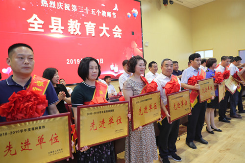 會上先后為優(yōu)秀教師、縣教育工作先進單位、縣尊師重教先進單位進行了頒獎。