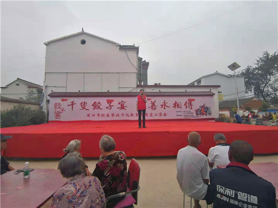 “家有父母/真的好幸福/縱然身后淚千行/不如身前多付出……”9月11日上午11時30分,伴隨著一首《家有父母好幸?!返母杪暎瑦坌闹驹刚甙岩煌胪霟釟怛v騰的餃子端到西華縣紅花鎮(zhèn)杜崗村600多位老人面前。