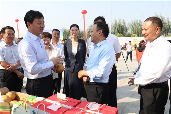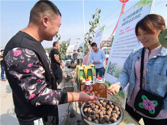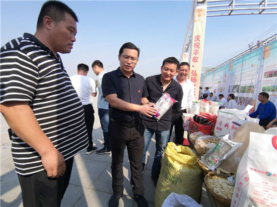 一問(wèn)一答間,爽朗的笑聲響徹節(jié)日上空,農(nóng)民們喜笑顏開,傳遞出濃濃的幸福。大棗、黑木耳、小麥粉、粉條等西華縣各具特色的農(nóng)產(chǎn)品紛紛亮相,除了展示各自的“增收實(shí)力”,也展示出幾年來(lái)發(fā)展農(nóng)業(yè)特色經(jīng)濟(jì)的豐碩成果。“政府搭臺(tái),農(nóng)民唱戲,每年一度的農(nóng)民豐收節(jié)既是農(nóng)民歡樂(lè)的節(jié)日,也是展銷農(nóng)產(chǎn)品的紐帶平臺(tái),今天我們奉母鎮(zhèn)展示了本地原生態(tài)粉條和純糧美酒,希望借助豐收節(jié)機(jī)遇,拓寬銷路實(shí)現(xiàn)農(nóng)民增收。”西華縣奉母鎮(zhèn)黨委書記陳鵬告訴記者。