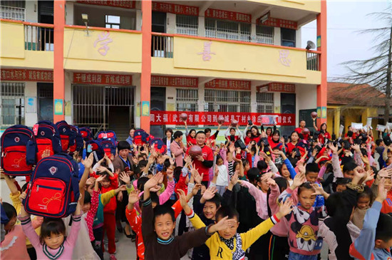 當(dāng)日上午,周大福集團(tuán)組織了15名員工組成義工隊,在周口區(qū)域負(fù)責(zé)人王保安的陪同下,帶著總價值3萬余元的300套愛心物資,送到學(xué)生手中?,F(xiàn)場,他們與學(xué)生愛心互動、親切交流,為學(xué)生們背上書包、送上文具,關(guān)心學(xué)生生活和學(xué)習(xí)情況。當(dāng)了解到學(xué)校資金緊張,師生還沒有統(tǒng)一服裝時。岳磊等人表示,將向上級申請,下一步積極為該校師生解決工作裝和校服問題。對此,徐莊小學(xué)師生熱烈鼓掌表示感謝。
