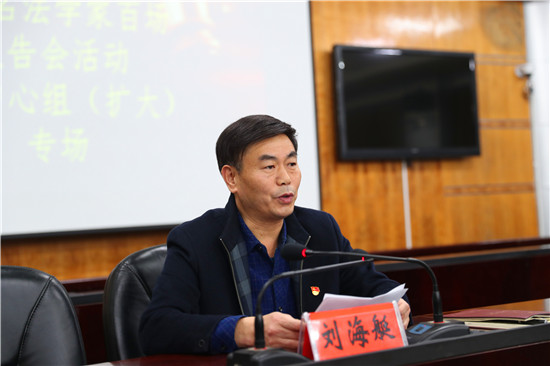 劉海艇在總結(jié)講話中說,本次報(bào)告會(huì)是太康縣學(xué)習(xí)貫徹黨中央關(guān)于全面依法治國(guó)決策部署的重要活動(dòng),各鄉(xiāng)鎮(zhèn)、各部門要認(rèn)真領(lǐng)會(huì)好、學(xué)習(xí)貫徹好這次報(bào)告會(huì)精神,堅(jiān)持以習(xí)近平新時(shí)代中國(guó)特色社會(huì)主義思想為指導(dǎo),牢固樹立法治思維,增強(qiáng)法治意識(shí),不斷提升依法行政的能力,努力營(yíng)造辦事依法、遇事找法、解決問題用法、化解矛盾靠法的法治環(huán)境,為建設(shè)平安太康、法治太康、和諧太康做出新的更大貢獻(xiàn)。