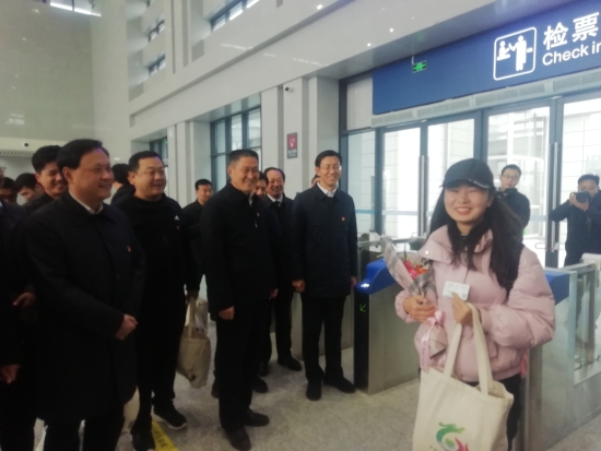 淮陽南站首列上行鄭州的高鐵即將開行,包括楊琳在內(nèi)的20位乘客收到了鮮花和布藝泥泥狗等乘車禮物?!靶腋?,總來得這么突然”,她抱著縣領(lǐng)導(dǎo)送上的禮物,臉頰多了一抹紅霞,微笑著走向列車。