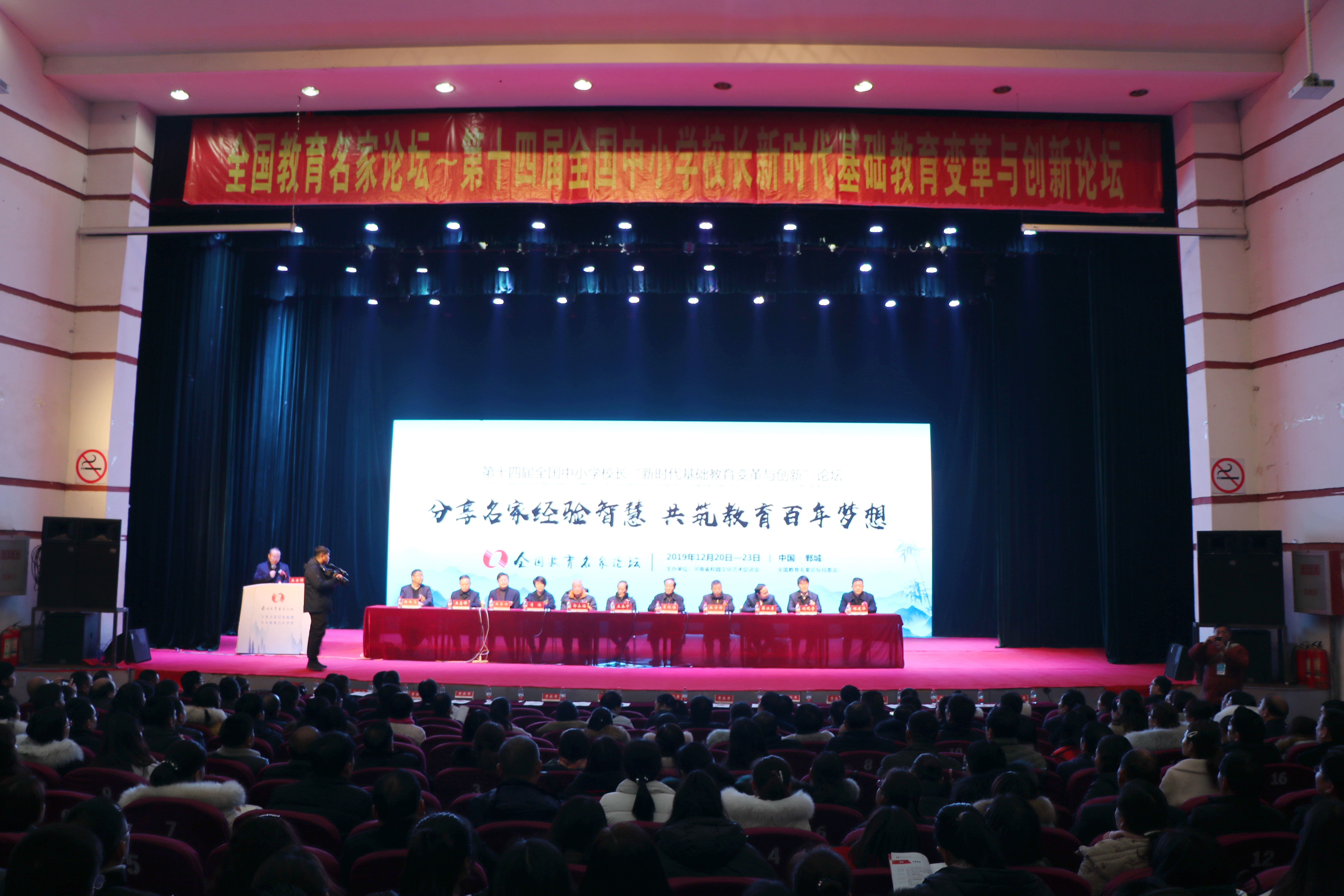 12月21日,全國(guó)教育名家論壇-第十四屆全國(guó)中小學(xué)校長(zhǎng)“新時(shí)代基礎(chǔ)教育變革與創(chuàng)新”培訓(xùn)會(huì)在鄲城縣人民會(huì)堂開(kāi)幕。本次論壇以“教育的堅(jiān)守與展望”為主題,由全國(guó)教育名家論壇、河南省校園文化藝術(shù)促進(jìn)會(huì)共同主辦、鄲城縣教體局承辦。