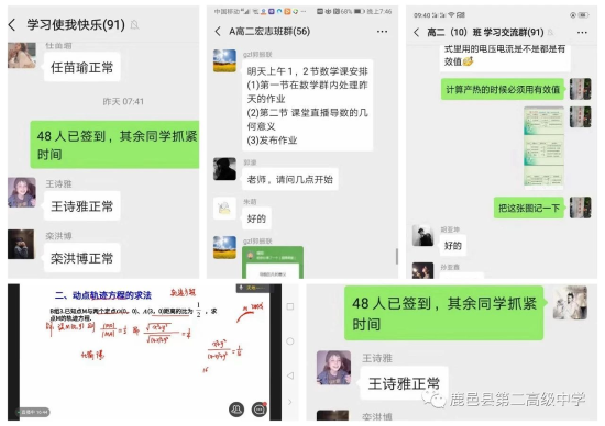 縣第二高級中學(xué)高三畢業(yè)班的班主任趙曉莉老師說:“疫情阻擋不了我對學(xué)生的關(guān)懷,疫情阻擋不了我對職責(zé)的擔(dān)當(dāng)!這就是我們二高人的精神和情懷!”新冠肺炎發(fā)生以來,學(xué)校以班級為單位組建網(wǎng)絡(luò)課堂,讓學(xué)生加入進來,在線上直播課堂,學(xué)生聽課,線下布置作業(yè),學(xué)生按時打卡完成,實現(xiàn)停課不停學(xué),教師和學(xué)生“在家上課”!