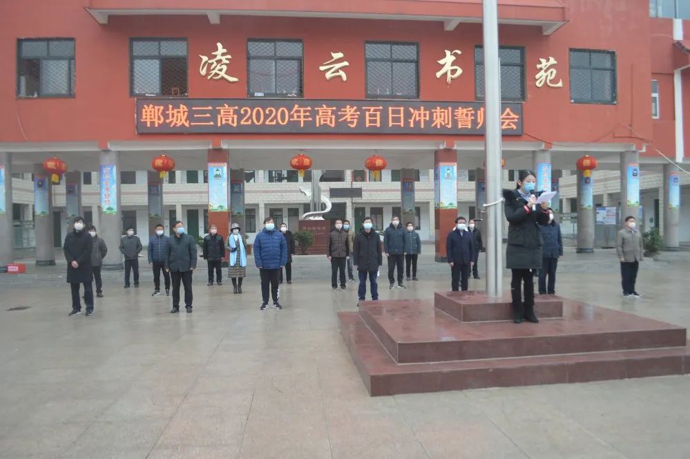 學(xué)校班子成員和高三年級(jí)領(lǐng)導(dǎo)、備課組長(zhǎng)在主會(huì)場(chǎng)學(xué)校凌云書苑前參加百日沖刺誓師現(xiàn)場(chǎng)會(huì),高三年級(jí)2000多名學(xué)生在家中也通過(guò)網(wǎng)絡(luò)參加了百日沖刺誓師大會(huì)。伴隨著莊嚴(yán)的國(guó)歌,五星紅旗在校園冉冉升起。