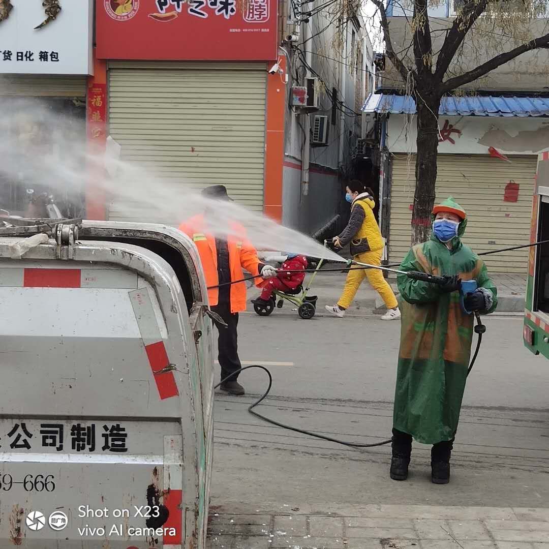 據(jù)了解,在疫情防控期間,按城管局環(huán)衛(wèi)部門成立46人專職隊伍開展消殺,每天出動消毒車4輛大型抑塵車3臺、各類噴霧器32部,1294名環(huán)衛(wèi)工人全員上崗,除了負責日常的環(huán)衛(wèi)作業(yè),還要對垃圾點、公廁、垃圾轉運站、清運車、工作站等進行全面消毒清洗,其中公廁、垃圾中轉站、垃圾桶、垃圾箱消殺不少于2次。