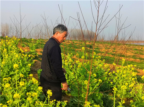 3月10日,沈丘縣老城鎮(zhèn)岳莊村村民在進行果樹整枝。
