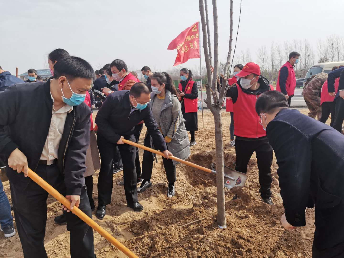 扶溝縣四個班子領導帶頭參加義務植樹活動