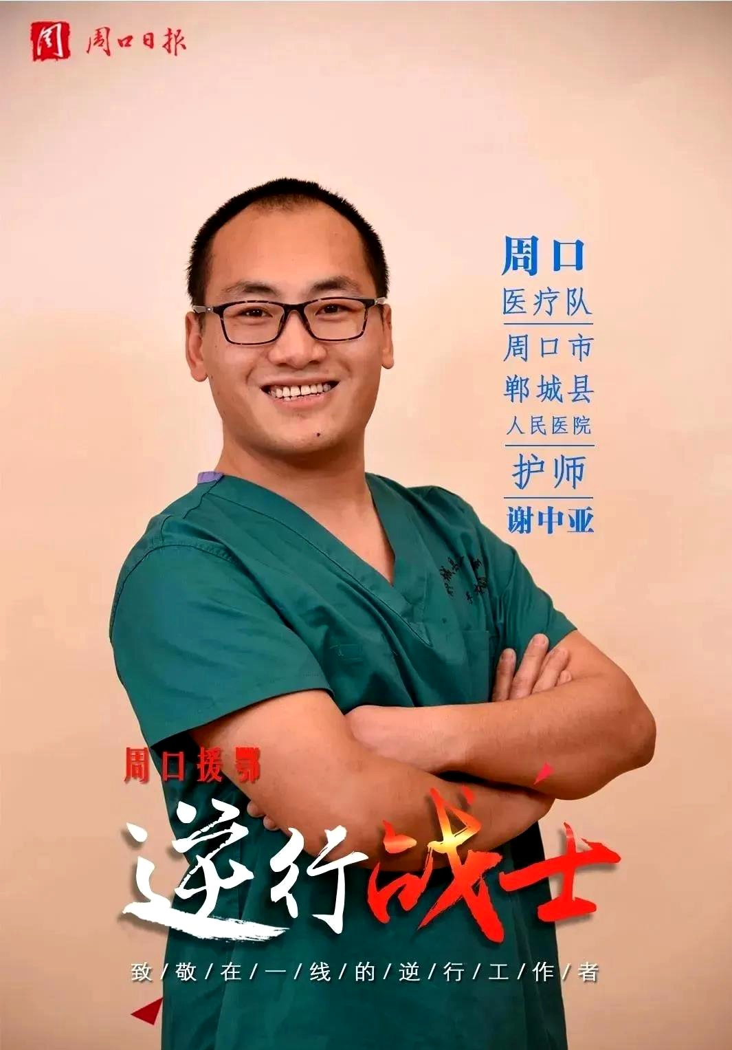 謝中亞是鄲城縣人民醫(yī)院重癥醫(yī)學(xué)科(ICU)護(hù)士。2月21日,剛剛結(jié)婚三個(gè)月的謝中亞主動(dòng)請(qǐng)戰(zhàn),前往一線參加武漢疫情防控救治工作。其實(shí),謝中亞結(jié)婚時(shí)正趕上醫(yī)院等級(jí)評(píng)審,謝中亞的婚假只請(qǐng)了三天就回到科室工作。本想著忙完醫(yī)院評(píng)審工作度蜜月,結(jié)果疫情又打亂了計(jì)劃。對(duì)此,他毅然決然參戰(zhàn),體現(xiàn)了一名醫(yī)護(hù)人員的責(zé)任和擔(dān)當(dāng)。