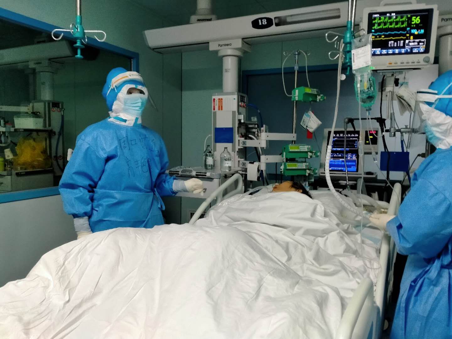 高艷艷說(shuō),除了多穿一層防護(hù)服,其他的跟平時(shí)的工作差不多。不同的地方,主要體現(xiàn)為兩點(diǎn),一就是從接班到交班,所做的所有工作都多了一份被感染的風(fēng)險(xiǎn)。二就是救治存在的難點(diǎn)多、棘手的問(wèn)題多、突發(fā)事件比較多,比如說(shuō):新冠肺炎患者發(fā)展到危重期,特別是病程較長(zhǎng)的病人,肺大多爛掉了,多數(shù)病人上有呼吸機(jī),這樣的病人極易出現(xiàn)氣胸。有一次值班期間,一位56歲的男性患者,突發(fā)氧分壓下降、煩躁、血壓下降、出汗,急查胸片證實(shí)氣胸,緊急給予了胸腔穿刺閉式引流,病人癥狀才得以緩解。氣胸雖然在臨床上很常見(jiàn),但對(duì)于新冠肺炎病人卻如同雪上加霜,不緊急處理病人很快就會(huì)死掉。每一個(gè)搶救的場(chǎng)面如同一場(chǎng)激烈的戰(zhàn)場(chǎng),而戰(zhàn)斗隨時(shí)會(huì)打響,但你卻根本無(wú)法預(yù)測(cè)哪一次戰(zhàn)斗會(huì)在哪一個(gè)時(shí)刻打響,所以值班時(shí)每位醫(yī)師都會(huì)慣性地緊盯著每個(gè)數(shù)值、各個(gè)參數(shù)……