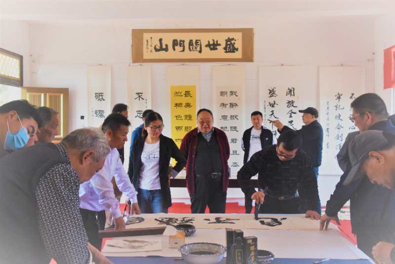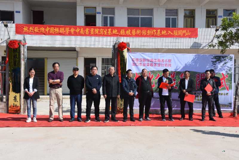 路晉成、張俊鵬、高麗、張紅先現(xiàn)場為中南書畫院關(guān)門山寫生基地、張坡藝術(shù)館關(guān)門山創(chuàng)作基地揭牌。書畫家們還現(xiàn)場揮毫潑墨,為村文化中心即興創(chuàng)作了書畫作品,并給當(dāng)?shù)鼐栀浟巳喾鶗嬅壹炎鳌?/p>