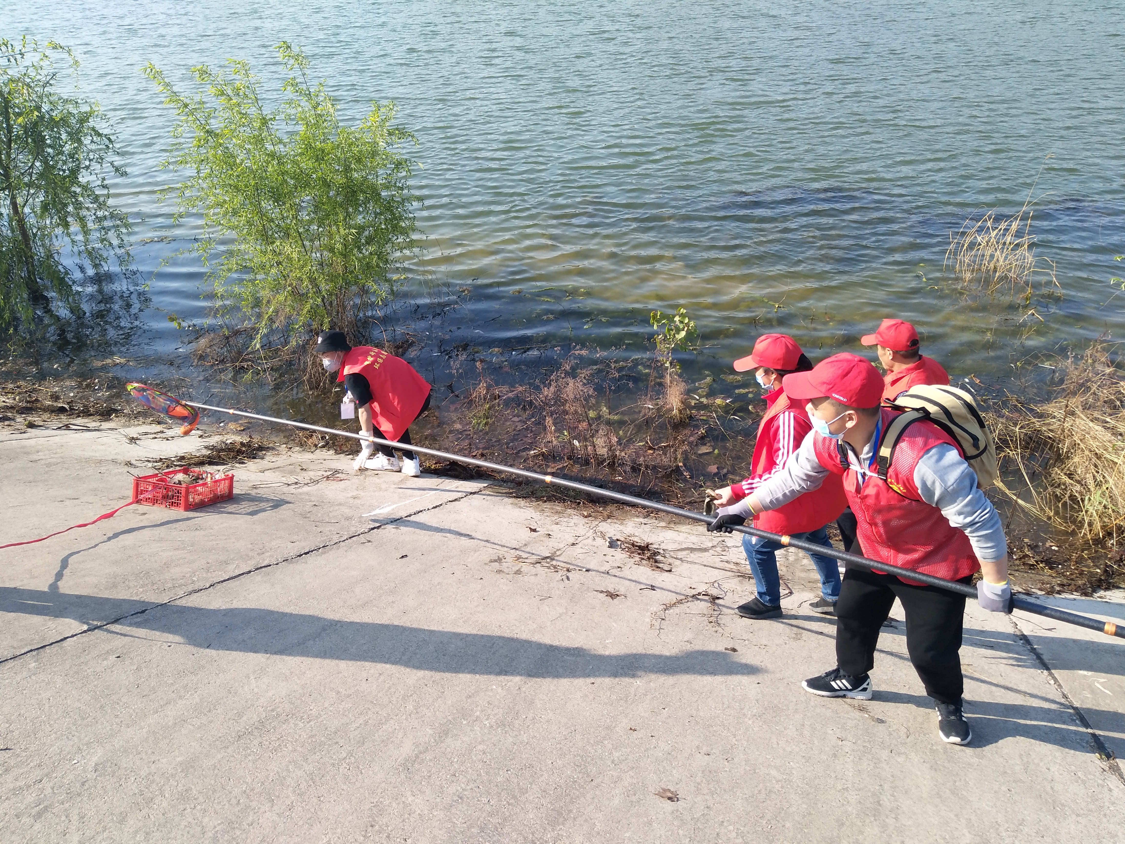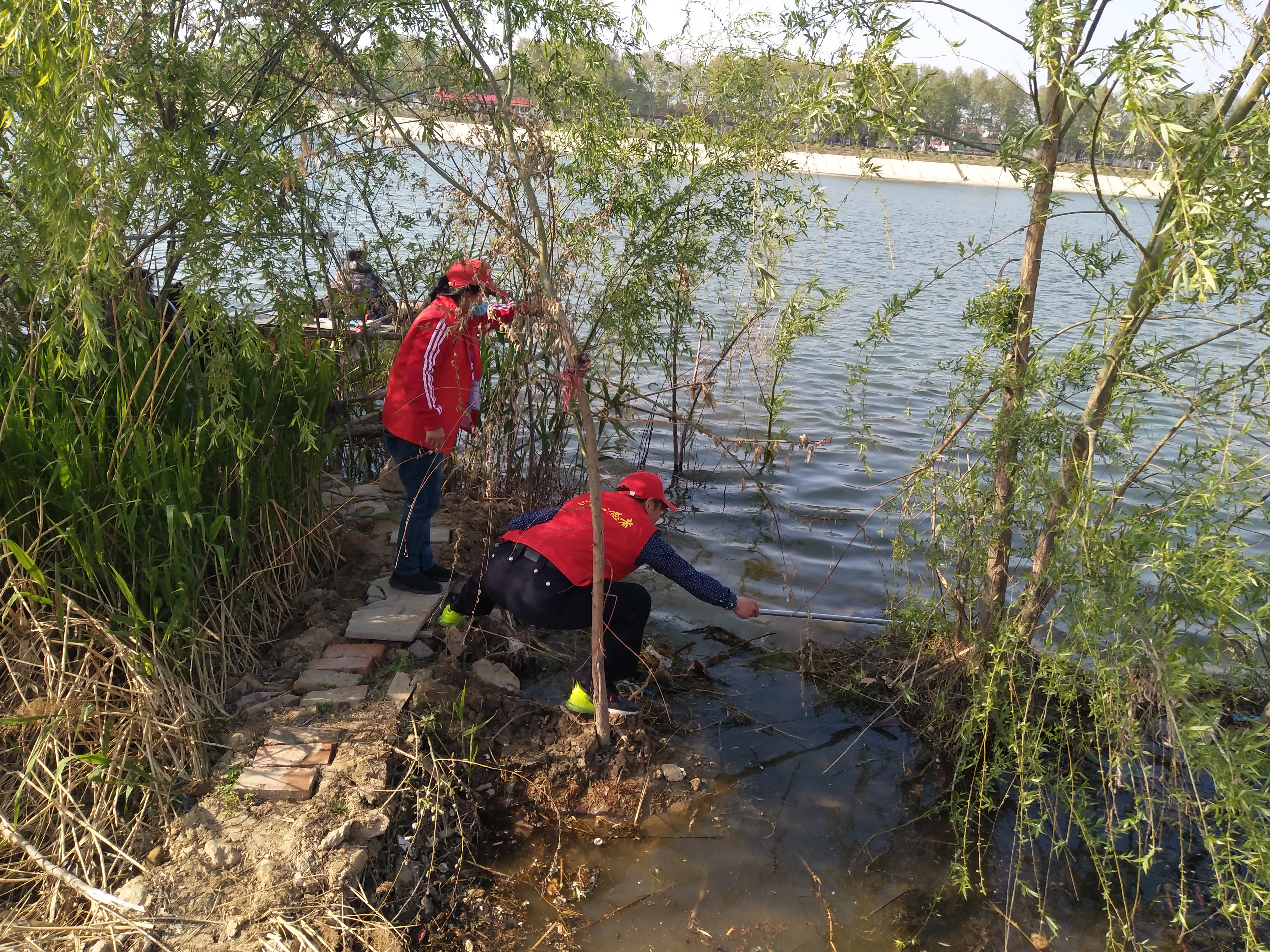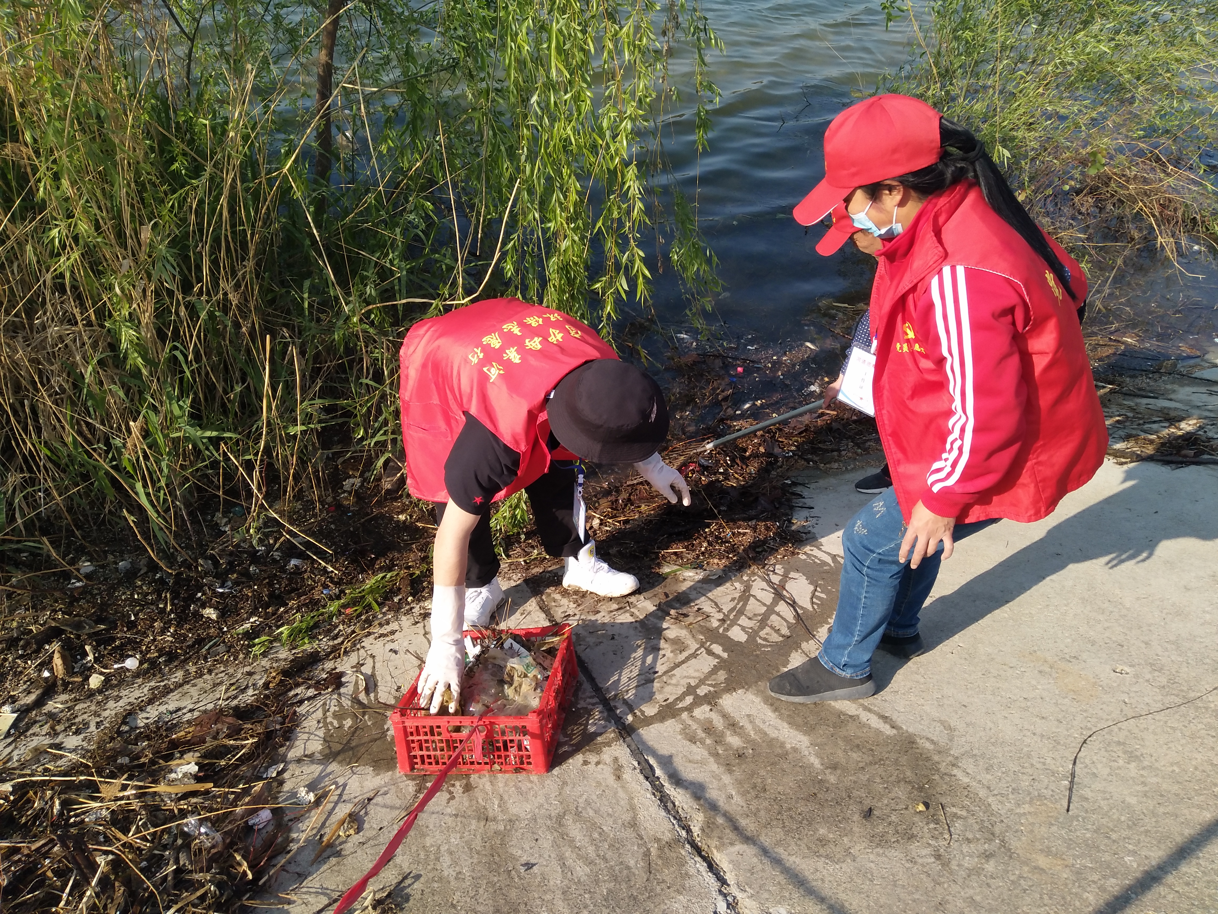 留下若干人員做問卷調(diào)查,孫彩云開始安排護(hù)河人員。誰拿鐵耙,誰拿網(wǎng)兜,誰拿垃圾箱,誰負(fù)責(zé)運(yùn)垃圾袋……孫彩云一一分工后,拿起大喇叭給志愿者團(tuán)隊(duì)提示注意事項(xiàng):“只撿白色垃圾呀,不要鉤水草,這個(gè)季節(jié)魚在上面產(chǎn)卵呢!”