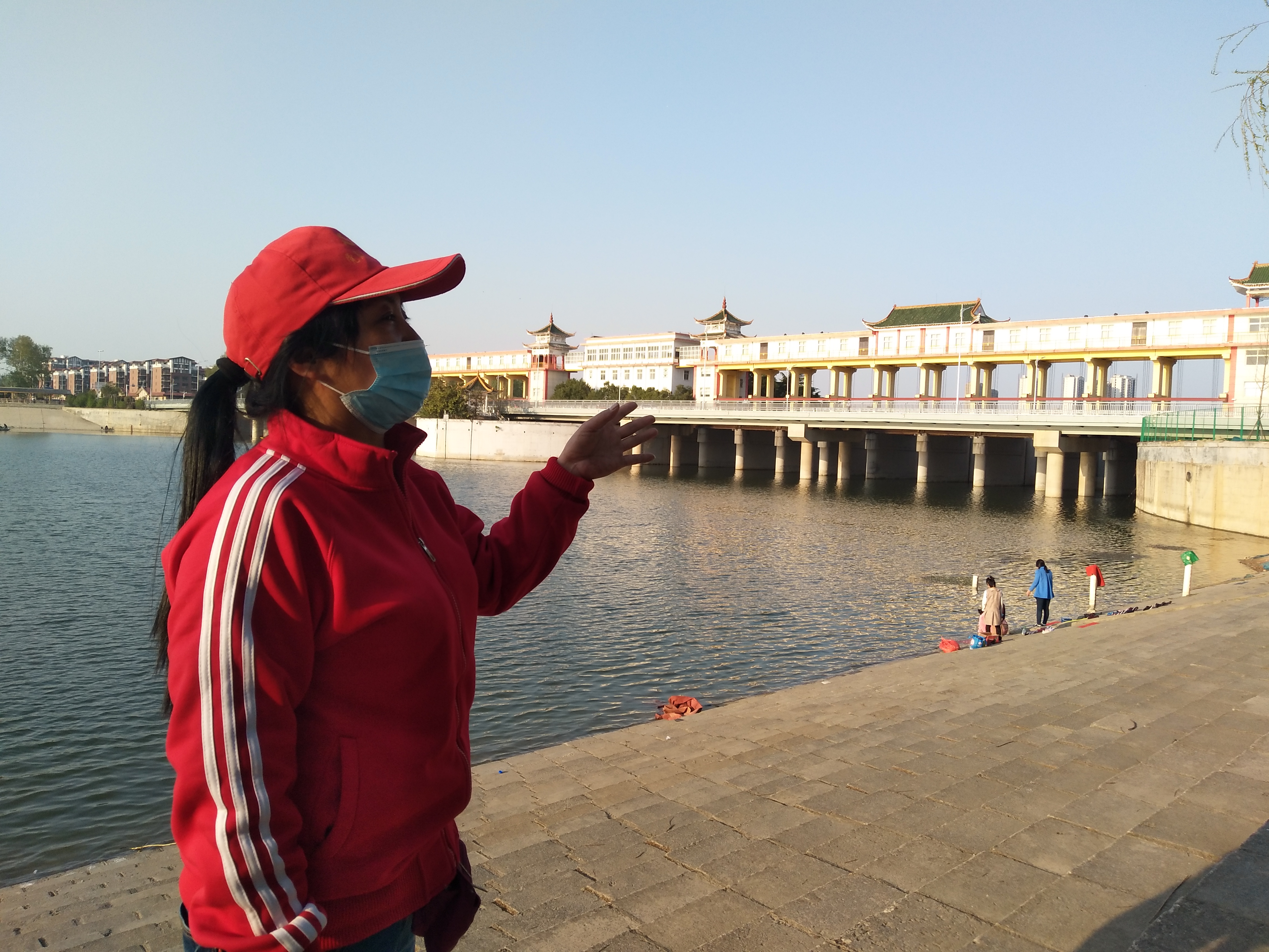 “有些人說我們做的是無用功,清了下游清不了上游。你現(xiàn)在來看看咱們老周口人以前游泳的這一段,以前這塊兒盡是門板,爛木條,還有糞便,經(jīng)過我們長期清理后,你看看現(xiàn)在?!笨看箝l最近的河灘上,水面如鏡,波光粼粼,幾名婦女在洗衣服。孫彩云指了指岸邊擺放的垃圾桶,上面寫著“周口市慈孝文化促進(jìn)會”、“川匯區(qū)民間河長辦公室”的字樣?!斑@塊兒的垃圾桶是我們捐的,護(hù)河成果來之不易,我們要長期維護(hù),影響帶動更多市民自覺愛護(hù)母親河。我們相信總有一天沙潁河水會恢復(fù)到捧起來就能喝的狀態(tài)!”