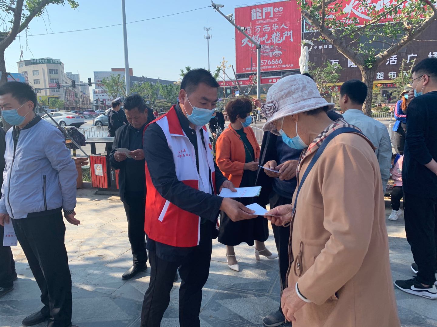 在該縣中心廣場,縣人民醫(yī)院、縣中醫(yī)院科室的骨干醫(yī)生搭起了義診臺,為過往市民量血壓,開展義診活動。同時,通過擺放宣傳展板和發(fā)放宣傳冊向過往市民宣傳常見病防護知識以及紅十字會的由來、發(fā)展過程、無償獻血、造血干細胞、預防新型冠狀病毒指南相關(guān)內(nèi)容。