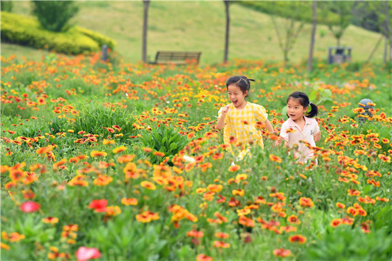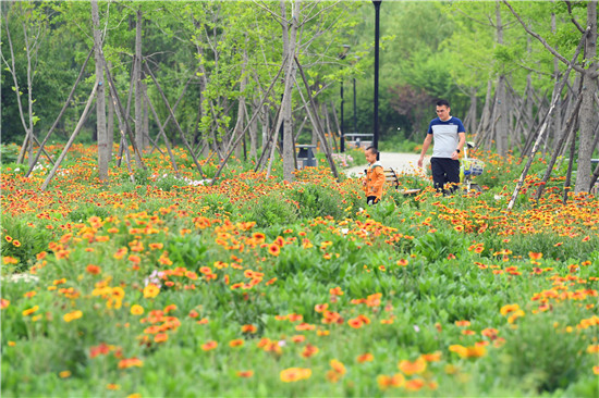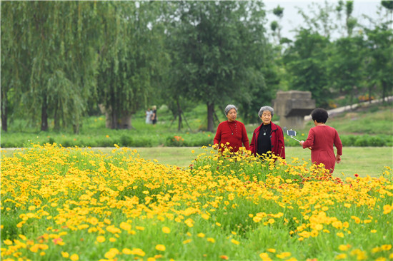 5月17日,市民徜徉在東方園林的花海中,暢享休閑樂(lè)趣。近期,位于沙潁河南岸的東方園林內(nèi),成片的天人菊等花卉相繼盛開(kāi),猶如五彩的花海,不少市民來(lái)些游玩、拍照。