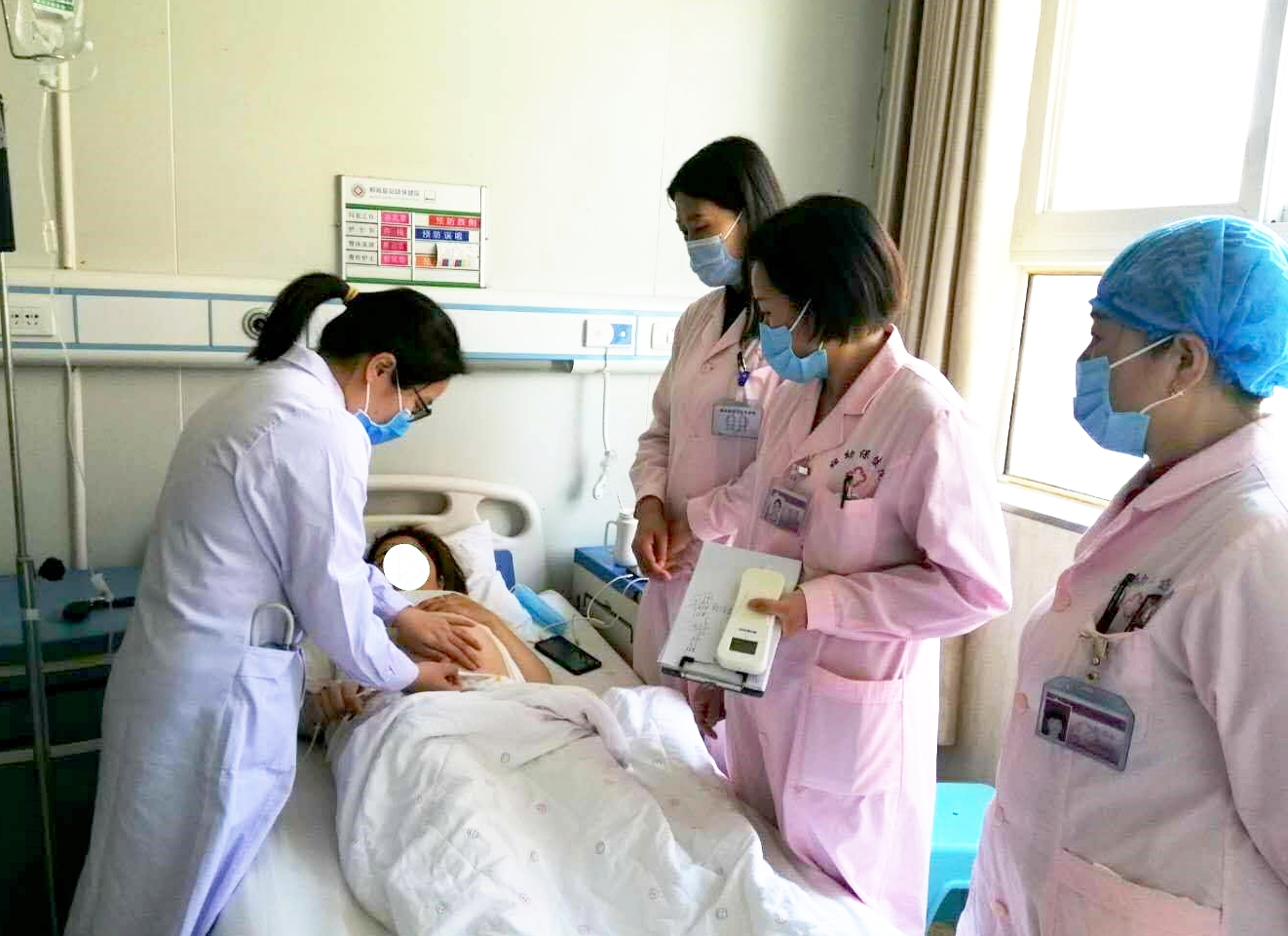 在鄲城縣婦幼保健院副院長李惠娟陪同下,王麗平帶領(lǐng)婦產(chǎn)科醫(yī)師查房,檢查患者切口愈合情況,指導(dǎo)母乳喂養(yǎng)和術(shù)后注意事項等;給全體婦產(chǎn)科醫(yī)護人員講解《妊娠期糖尿病管理》,詳細(xì)的闡述了妊娠期糖尿病的發(fā)病機制、臨床癥狀、診斷、治療和飲食指導(dǎo)等;在婦產(chǎn)科術(shù)后監(jiān)護室,搶救一產(chǎn)后出血病人,幫病人按摩子宮、指導(dǎo)搶救,讓患者很快轉(zhuǎn)危為安。