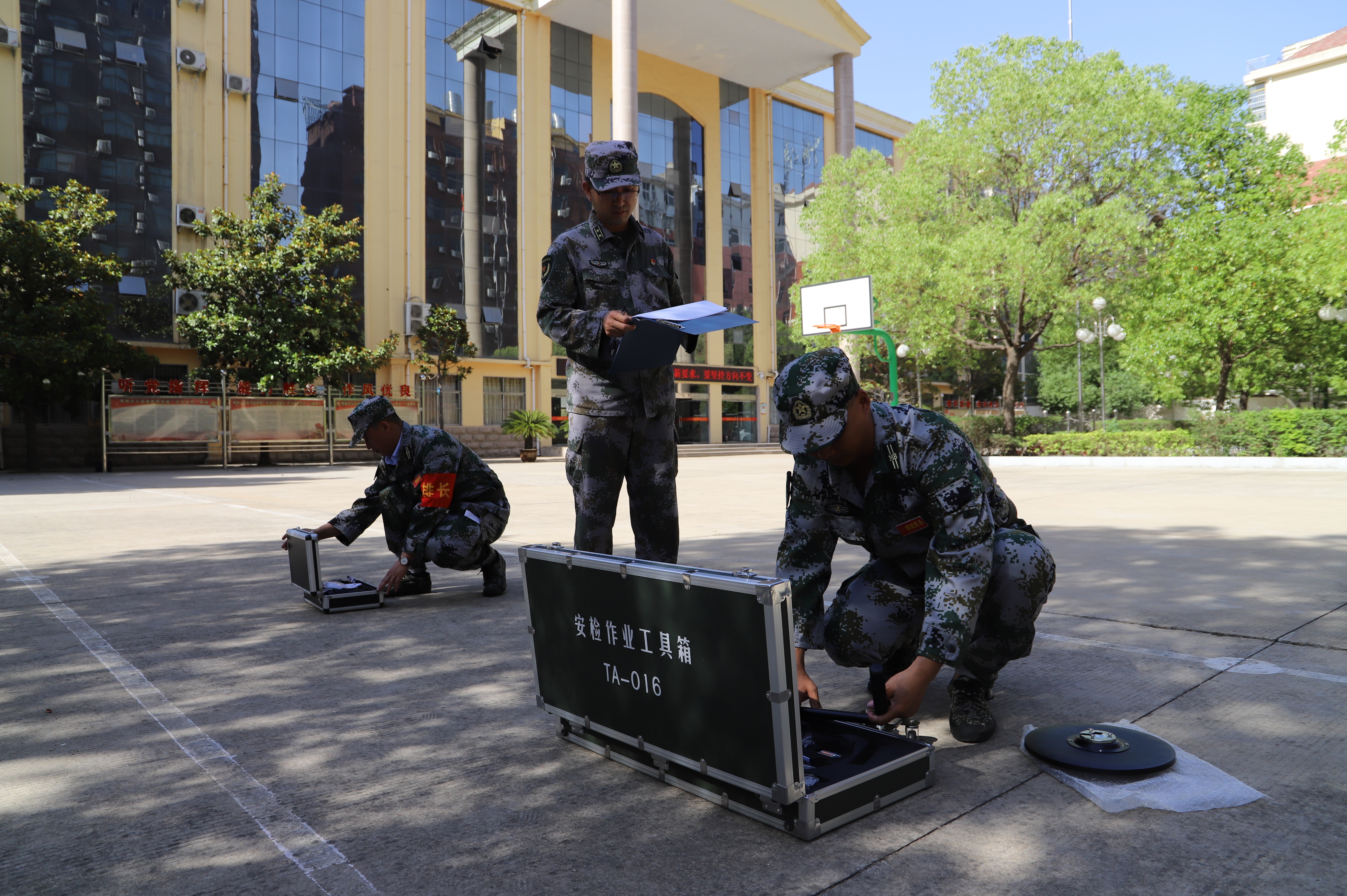 戰(zhàn)前動員、全兵備戰(zhàn)。反恐演練五小項、民兵樣樣嫻熟,安檢工具組裝、投入工作,排爆設備重置、進入“危險區(qū)”,路障設置、一招投敵,槍響人倒、抓捕網槍助力反恐事半功倍,多功能工具箱讓反恐民兵如虎添翼……你方唱罷我登場,每個排、每位民兵都能熟練操作。