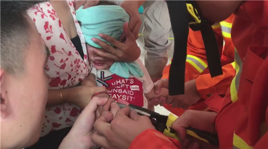 鄲城:幼童鋼管“咬手” 鄲城消防來(lái)幫忙
