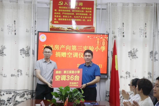 “方遠(yuǎn)房地產(chǎn)公司為第三實(shí)驗(yàn)小學(xué)捐贈空調(diào),大大改善學(xué)校的降溫條件,為孩子們營造更為舒適的學(xué)習(xí)環(huán)境。”第三實(shí)驗(yàn)小學(xué)校長王玉剛表示,學(xué)校將以此為契機(jī),號召廣大學(xué)生好好學(xué)習(xí),長大后回報社會;全校教職員工以優(yōu)異的教學(xué)業(yè)績回報社會,傳遞愛心,努力辦學(xué)生快樂、教師幸福、家長滿意的現(xiàn)代化學(xué)校。