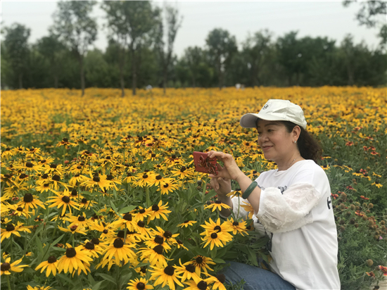 “不用移春檻,西風(fēng)滿客車。行行無(wú)長(zhǎng)物,粲粲只黃花?!苯瘴沂猩碀}河北岸的金光菊迎來(lái)了盛花期,吸引了市民們紛紛踏至。有的駐足靜尚、有的拍照留念、還有的拍個(gè)短視頻在朋友圈里曬一下,市民們?cè)诩议T(mén)口就能享受這滿眼金黃帶來(lái)的幸福。