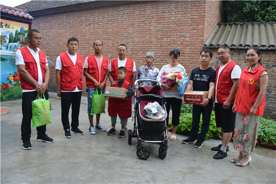 7月12日上午,周口市義工協(xié)會劉玉英帶領(lǐng)市縣義工志愿者一行10余人冒雨到商水縣平店鄉(xiāng)曾莊村看望慰問貧困家庭曾廣忍的新生病兒,送去了奶粉、嬰兒車、衣物等生活用品,送去了社會慈善機構(gòu)和愛心人士的一片關(guān)愛之情。