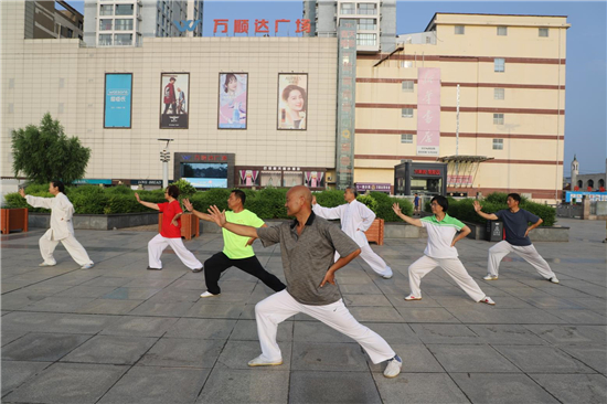 冬練三九,夏練三伏,練出一身真功夫。投伏第一天,周口市武術協會會長張志民帶領會員在五一文化廣場習練新編和氏26式太極拳。記者 王凱 攝