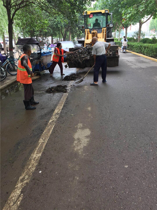 強降雨過后,道路泥沙沉積嚴(yán)重。開發(fā)區(qū)公用事業(yè)管理中心迅速行動,組織環(huán)衛(wèi)工人,出動高壓清洗車、灑水車、洗掃車等作業(yè)車輛,對道路進(jìn)行機械化聯(lián)合清洗、清掃工作。