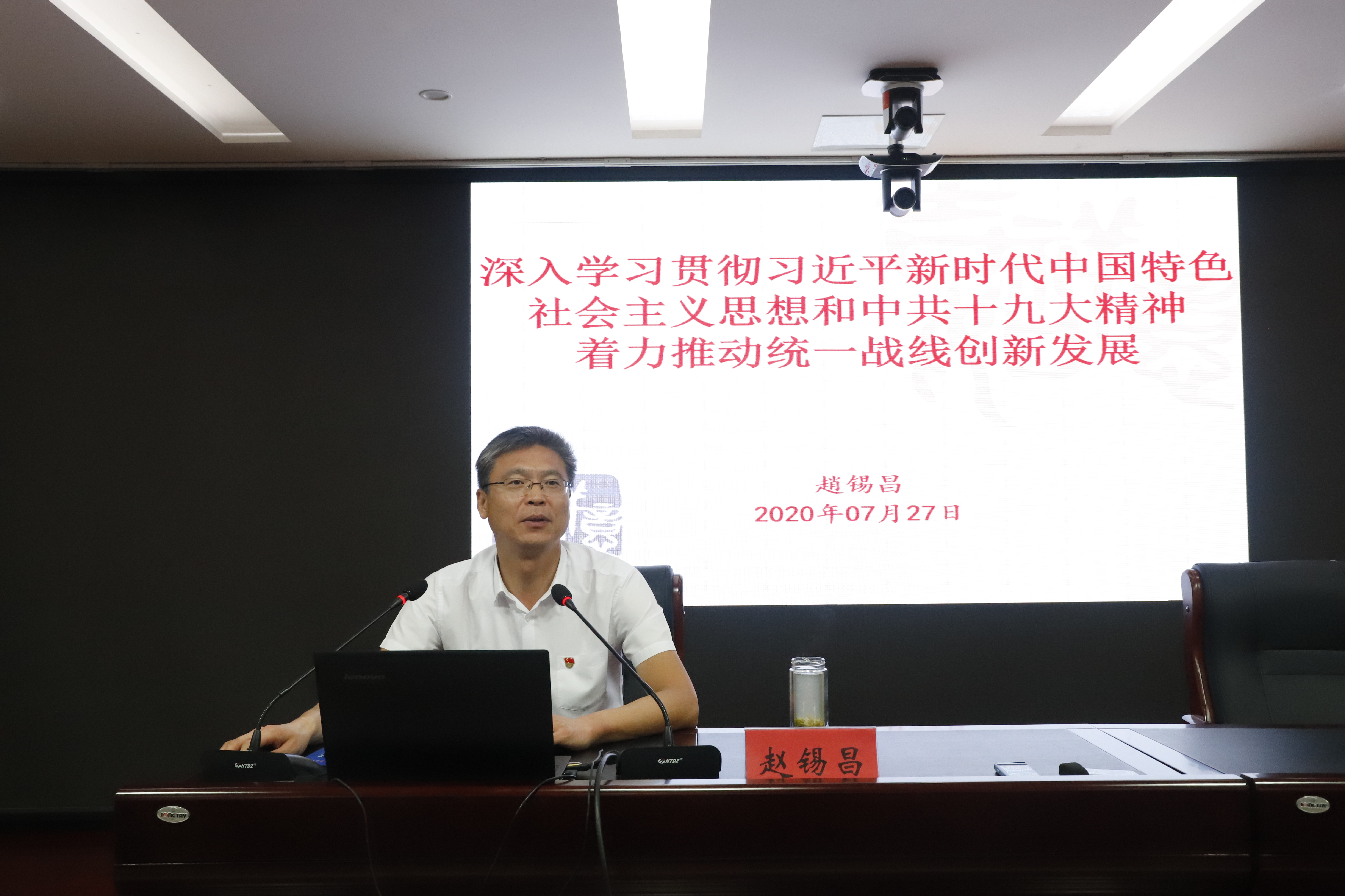 趙錫昌以《深入學(xué)習(xí)貫徹習(xí)近平新時(shí)代中國(guó)特色社會(huì)主義思想和中共十九大精神著力推動(dòng)統(tǒng)一戰(zhàn)線創(chuàng)新發(fā)展》為題,圍繞新時(shí)代統(tǒng)一戰(zhàn)線的定位、新時(shí)代統(tǒng)一戰(zhàn)線的要求、新時(shí)代統(tǒng)一戰(zhàn)線的任務(wù)、新時(shí)代統(tǒng)戰(zhàn)工作的方法等四個(gè)方面,就統(tǒng)一戰(zhàn)線的性質(zhì)、主題、功能、方針、工作方法、對(duì)象范圍和中央對(duì)統(tǒng)戰(zhàn)工作的要求等重點(diǎn)內(nèi)容,為參訓(xùn)黨員干部了一堂生動(dòng)的理論知識(shí)輔導(dǎo)課。