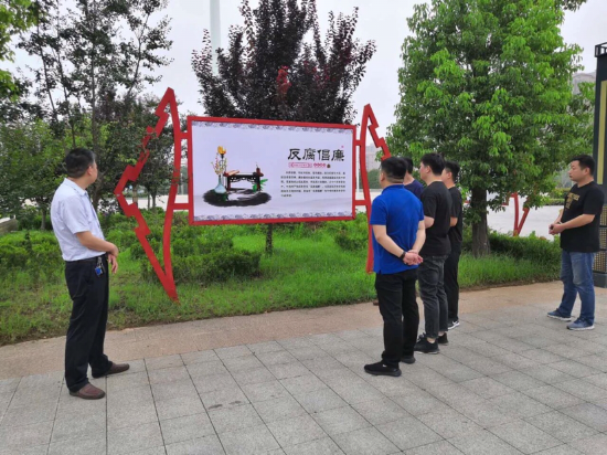 大家先后在廉政人物、廉政故事、廉政格言等標牌前駐足觀看,接受黨風廉政建設(shè)教育。