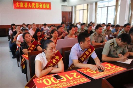 太康縣還隆重舉行了2020年義務兵家屬優(yōu)待金集中發(fā)放儀式??h委、縣政府高度重視現(xiàn)役軍人權益保障,7月30日,在縣人武部國防教育中心舉行了2020年義務兵家屬優(yōu)待金集中發(fā)放儀式,按照義務兵家屬優(yōu)待金發(fā)放標準,將所有優(yōu)待金全部足額發(fā)放到位。前來參加儀式的家屬們披紅帶花,氣氛熱烈,營造了“一人參軍、全家光榮”的濃厚氛圍,進一步激發(fā)了廣大青年學子參軍報國熱情。