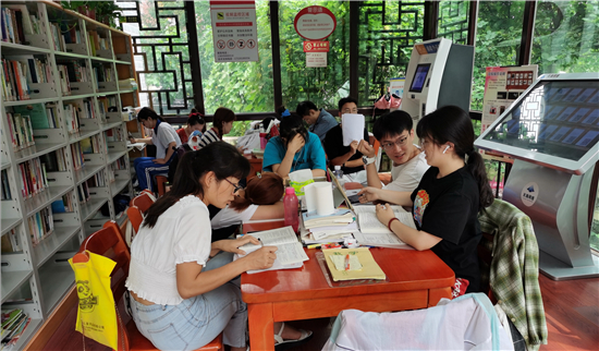 自進(jìn)入暑假以來,市圖書館接待人數(shù)居高不下,其中學(xué)生居多。不少學(xué)生來此學(xué)習(xí)、寫暑假作業(yè),他們感到圖書館環(huán)境靜謐,有學(xué)習(xí)氛圍。在市區(qū)的各個(gè)智慧圖書館內(nèi)有時(shí)還會(huì)出現(xiàn)了“一座難求”的現(xiàn)象。但大家都自覺遵守圖書館的紀(jì)律,沒有一絲噪音。