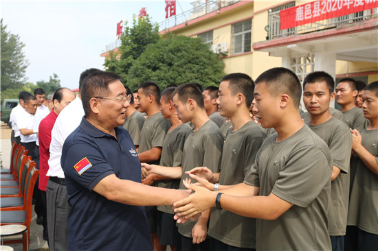 9月9日上午,在鹿邑縣預定新兵役前訓練集結(jié)之際,資深媒體人、北京周口企業(yè)商會秘書長、鹿邑縣雙擁愛心協(xié)會發(fā)起人張杰特別邀請享受正軍級職資待遇、終身享受國務院政府特殊津貼的鹿邑籍將軍畢啟亮,為鹿邑縣343名體檢、政考雙合格的“準新兵”上了一堂精彩的國防教育課,同時還向“準新兵”每人捐贈一套由周口商水籍原總政治部秘書長、軍事科學院副政治委員,第二炮兵副政治委員程寶山中將親手題寫“昨日是鄉(xiāng)親,今天成戰(zhàn)友——從軍報國志高遠,不忘家鄉(xiāng)故土情”的筆記本和鋼筆一支。鹿邑縣人武部部長范亞光,縣退役軍人事務管理局負責同志以及鹿邑縣雙擁愛心協(xié)會團體在現(xiàn)場聆聽國防教育課并參加捐贈活動。