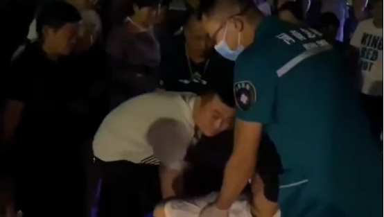 當(dāng)日22時許,張旭下班返家途中,在人民路市市場監(jiān)督管理局附近遇到一起車禍。張旭上前查看情況,只見一男孩躺倒在地、痛苦呻吟,地上有少量血跡,電動車歪倒在路中央。