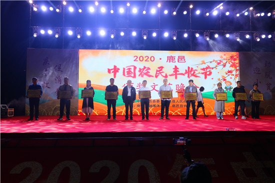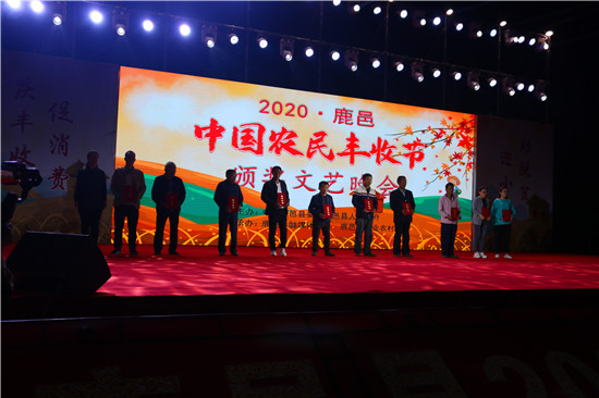 9月22日晚,由中共鹿邑縣委、鹿邑縣人民政府主辦的2020年鹿邑縣農(nóng)民豐收節(jié)文藝晚會在鹿邑縣文化中心廣場舉辦。晚會現(xiàn)場頒布了鹿邑縣“十佳家庭農(nóng)場”“十佳農(nóng)民合作社”“十佳特色農(nóng)產(chǎn)品品牌”“十佳返鄉(xiāng)創(chuàng)業(yè)脫貧致富帶頭人”“十佳脫貧致富先進個人”五項獎項,40名新型農(nóng)民(農(nóng)場、合作社)代表和10個特色農(nóng)產(chǎn)品品牌獲殊榮,他們用行動和產(chǎn)品充分展示了全縣現(xiàn)代農(nóng)業(yè)在過去一年中取得的輝煌成果??h領(lǐng)導(dǎo)雷申、楊所超、侯自峰、王曉征、張國慶、肖西國等出席豐收節(jié)晚會,并為獲獎?wù)哳C發(fā)榮譽證書和獎牌。