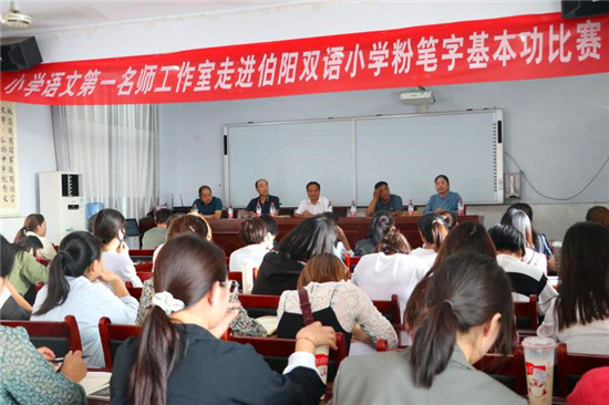 “漢字是中華民族的瑰寶,寫(xiě)字教學(xué)是教師的一項(xiàng)基本功。此次縣硬筆書(shū)法協(xié)會(huì)應(yīng)邀來(lái)到伯陽(yáng)學(xué)校,舉行書(shū)法進(jìn)校園活動(dòng)。省書(shū)法家協(xié)會(huì)會(huì)員、縣書(shū)法家協(xié)會(huì)副主席李曉杰,省美術(shù)家協(xié)會(huì)會(huì)員劉龍飛作為特邀嘉賓現(xiàn)場(chǎng)揮毫潑墨與師生現(xiàn)場(chǎng)交流,將活動(dòng)引向高潮?!笨h硬筆書(shū)法協(xié)會(huì)主席鮑雁冰說(shuō),結(jié)合自己多年對(duì)硬筆、毛筆習(xí)字的感悟,重點(diǎn)對(duì)教師進(jìn)行“如何寫(xiě)好字”的培訓(xùn),使教師知道練字既能提高寫(xiě)字技能,又可修身養(yǎng)性,從而引發(fā)了教師練習(xí)書(shū)法的興趣。(③2)