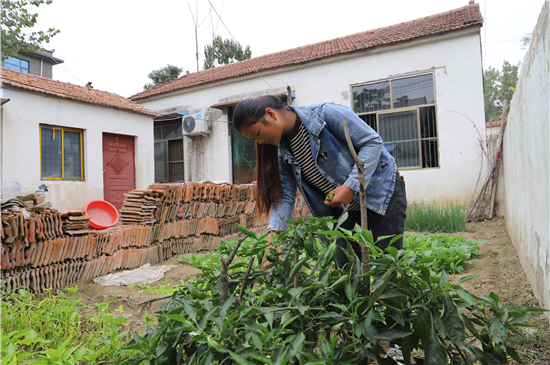 同是瓜趙村危房改造戶,19歲的趙明明正在院里灑水、摘菜,小院不大,東部菜園、西部通道,井井有條,油麥菜、菠菜、小青菜、辣椒、蔥、香菜、空心菜、梅豆角……五彩蔬菜給這個農(nóng)家小院平添了幾分溫馨和生機。