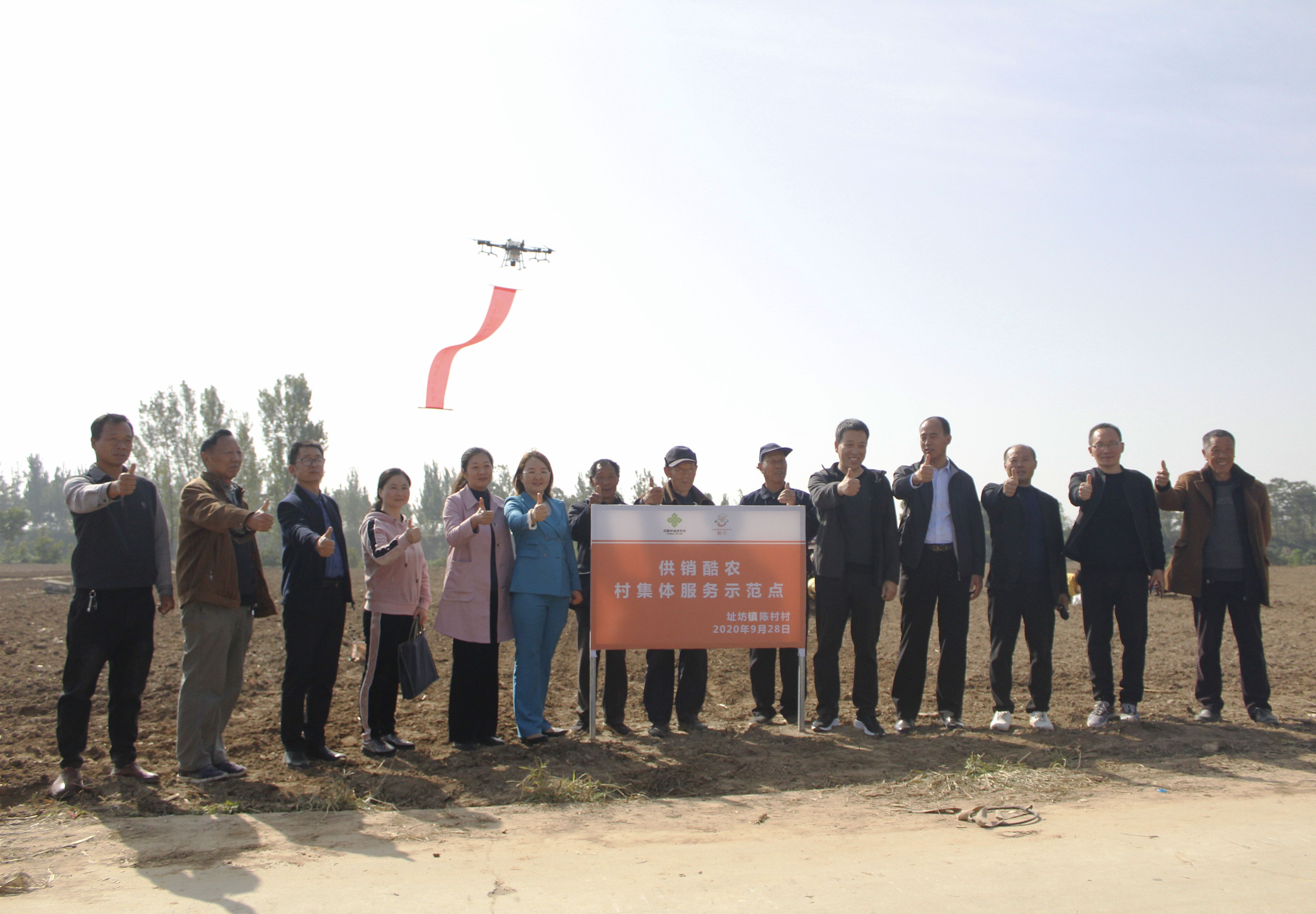 “合作的項目產(chǎn)業(yè)涵蓋了農(nóng)業(yè)生產(chǎn)資料、農(nóng)藥、生活用品的線上線下供應(yīng),土地大田托管,無人機械耕作、播種、農(nóng)藥噴施、收割等?!眴觾x式上,周口供銷集團為農(nóng)事業(yè)部部長牛衛(wèi)東介紹說,陳村村集體股份經(jīng)濟合作社是周口市供銷集團與河南酷農(nóng)科技有限公司(以下簡稱酷農(nóng)無人機公司)共同打造的無人機進鄉(xiāng)村項目,旨在依靠該公司的科技支撐,發(fā)展智慧農(nóng)業(yè)、綠色農(nóng)業(yè),發(fā)揮供銷體系優(yōu)勢,通過整合無人機智能技術(shù)研發(fā)力量,形成無人機智能系統(tǒng)的管控數(shù)據(jù)平臺,將硬件軟件數(shù)據(jù)管理方面形成獨有的供應(yīng)商生產(chǎn)力。