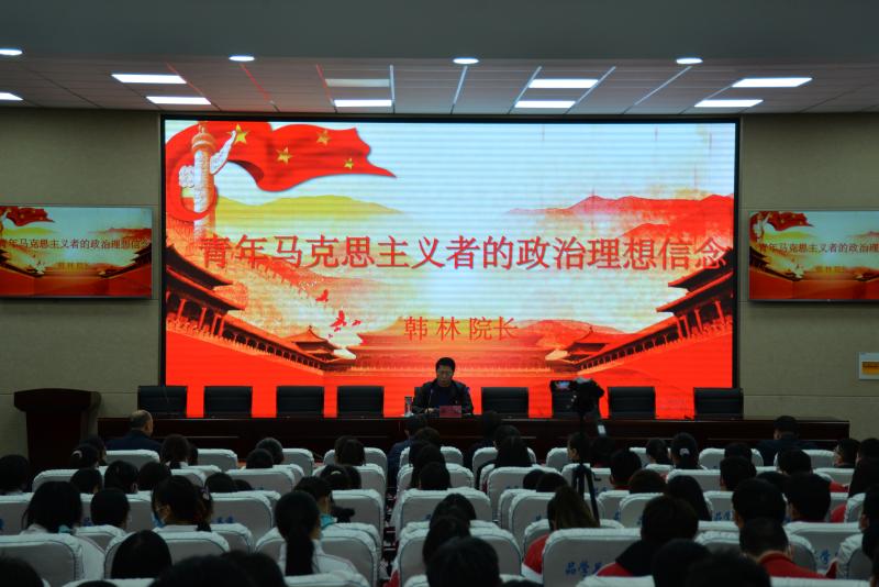 開(kāi)班儀式結(jié)束后,周口技師學(xué)院院長(zhǎng)韓林以《青年馬克思主義者的政治理念信念》為題,為學(xué)員們上了第一課。