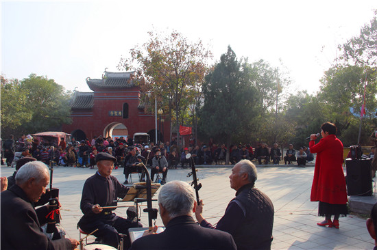 11月10日,戲迷朋友在商水縣郝崗鎮(zhèn)北社村千年古塔旁表演戲曲節(jié)目。初冬時(shí)節(jié),暖陽普照,壽圣寺古塔附近的戲迷和樂器愛好者自發(fā)來到千年古塔旁表演戲曲節(jié)目,為當(dāng)?shù)厝罕娝蜕暇实奈幕蟛停M(jìn)一步活躍了農(nóng)村文化生活。①15周口日?qǐng)?bào)·周道客戶端記者付永奇 通訊員 呂耀光 攝