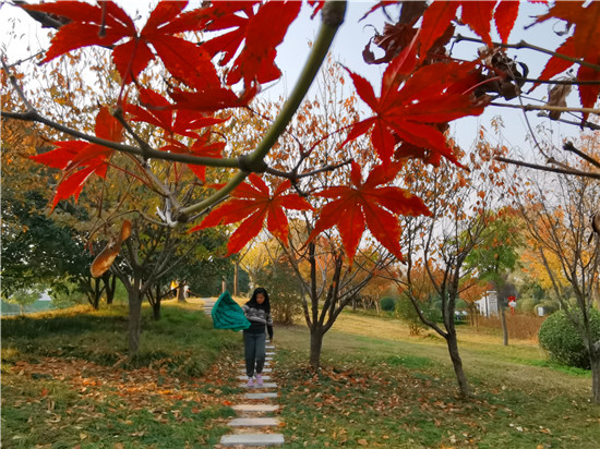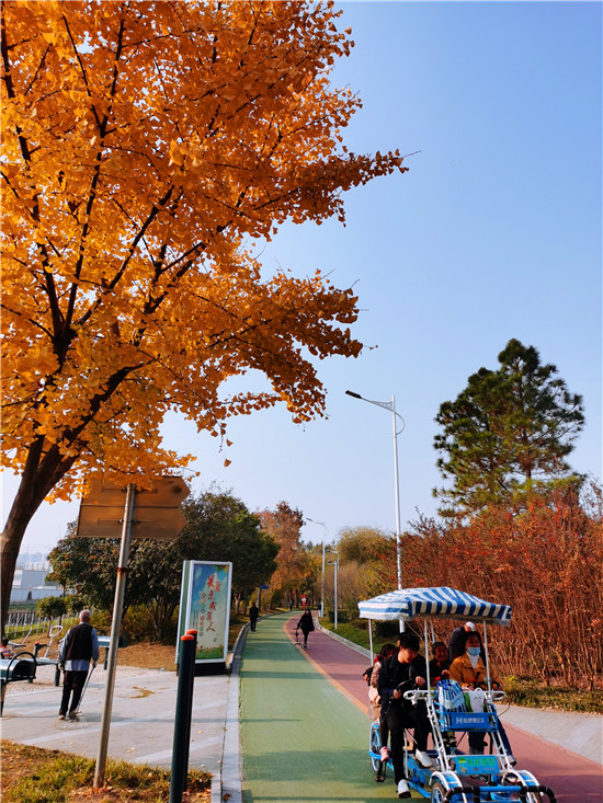 11月14日,陽光明媚,深秋的周口公園內(nèi)五彩斑斕,游人如織。