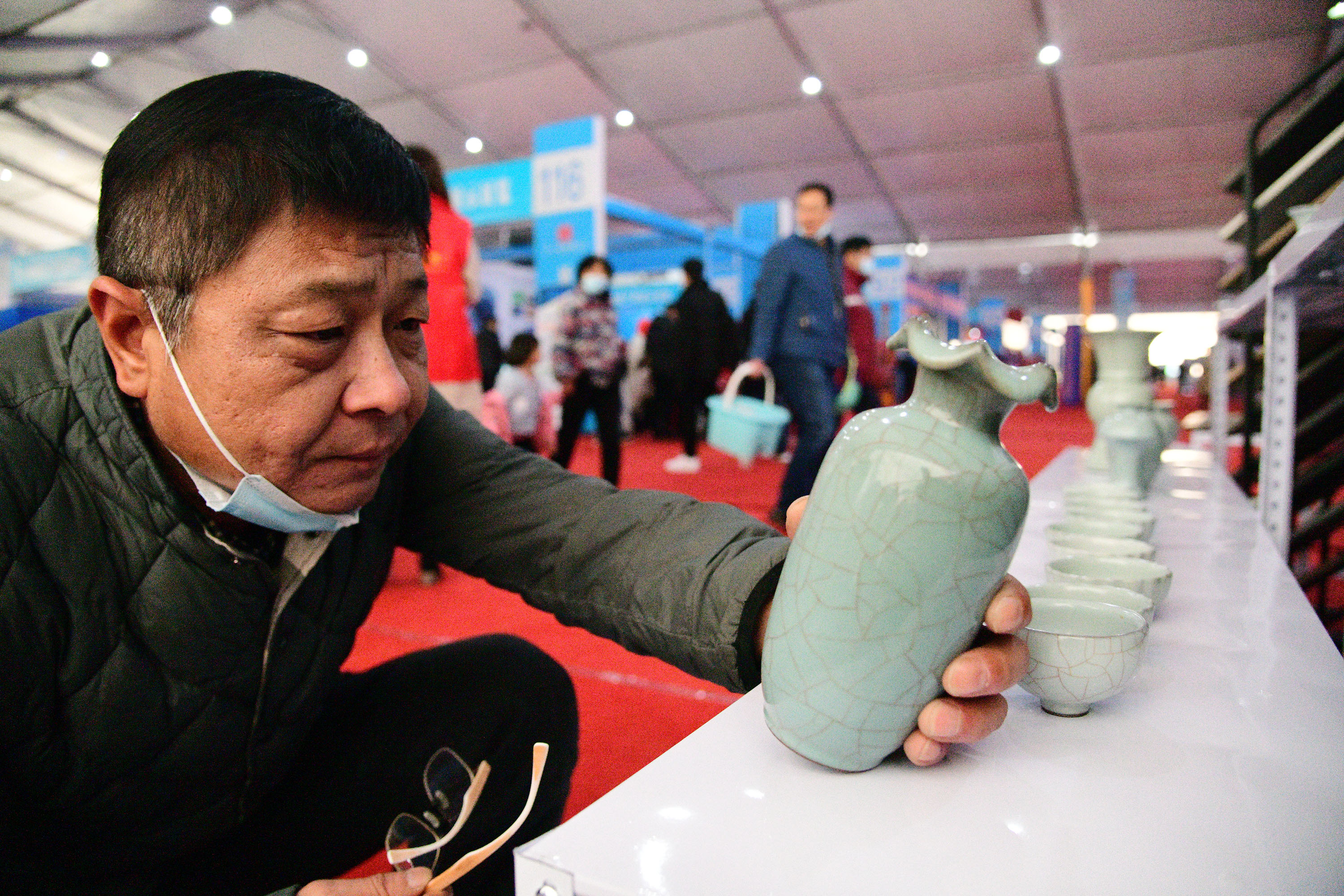 在展會(huì)上給顧客講述大宋官瓷品相的董俊,也是很厲害的周口企業(yè)家,能夠把開封老字號(hào)的官瓷,運(yùn)營得風(fēng)生水起,大宋官瓷瓷器和汴繡被譽(yù)為七朝古都象征性的物產(chǎn),還有大宋官茶,含有被譽(yù)為茶中黃金的“金花菌”,是“河南老字號(hào)”、“非物質(zhì)文化遺產(chǎn)”,也被選入“首屆開封禮物”。大宋官茶源于宋神宗(公元1068年),它今天的主人是淮陽區(qū)新站籍企業(yè)家牛華麗,這位淮陽籍漢子從小在開封長大,對(duì)大宋官茶獨(dú)有情種,現(xiàn)在是大宋官茶掌舵人,是大宋官茶非遺傳承人。而福興齋桶子雞老總馬勇是沈丘人,這是開封的名吃,去開封旅游,吃桶子雞和小籠包,成為游客必須品嘗的美味。馬勇參加周商大會(huì)帶回周口的桶子雞深受家鄉(xiāng)人的喜歡,一直熱賣。而“鞋品”鞋的老總侯建峰是鄲城人,他在廣州設(shè)有代加工廠,鞋子以河南為主要市場(chǎng),在開封城由五個(gè)專賣店,同時(shí)也銷往全國。