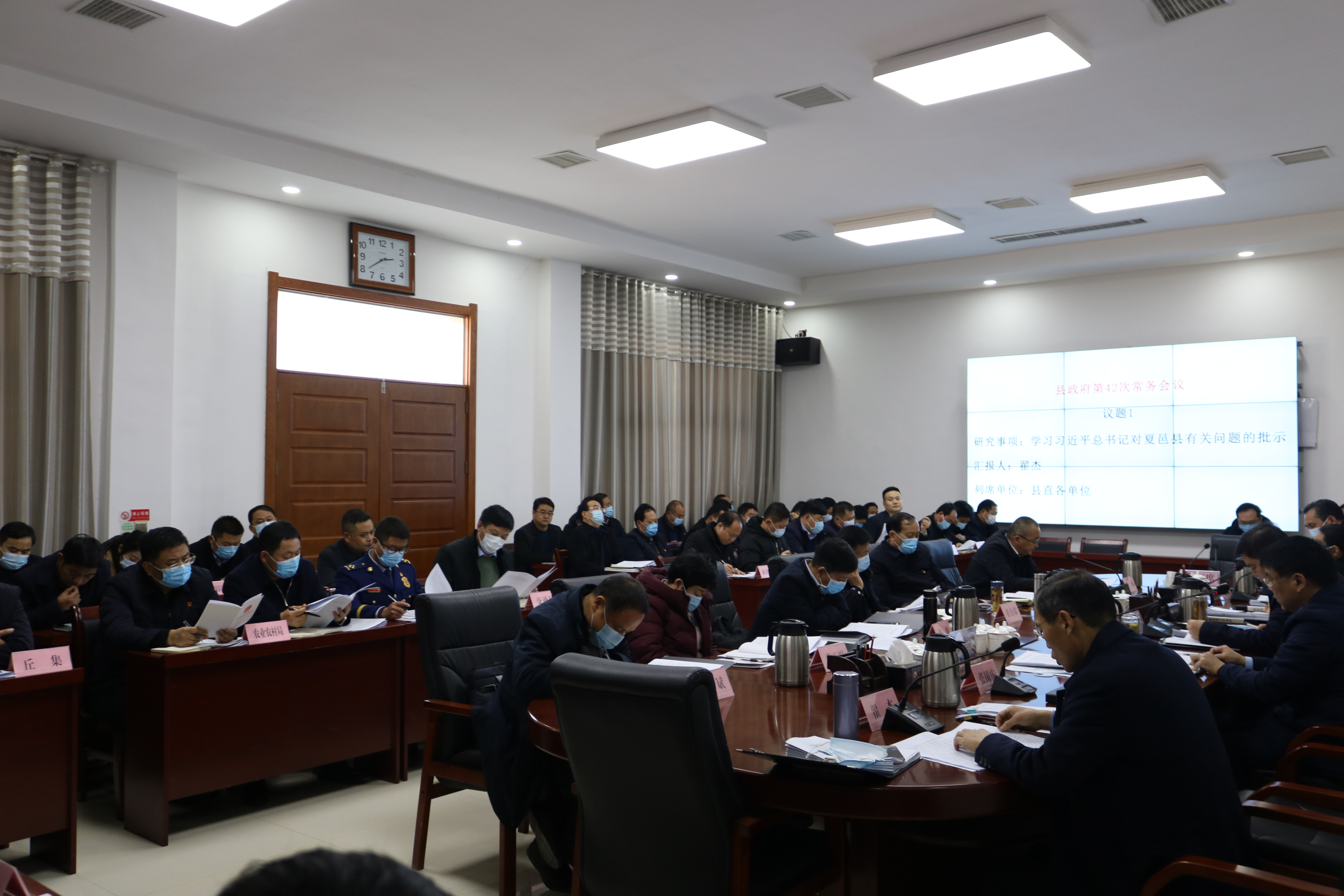 會(huì)議先后傳達(dá)學(xué)習(xí)了習(xí)近平總書(shū)記對(duì)夏邑縣有關(guān)問(wèn)題的批示精神、中央經(jīng)濟(jì)工作會(huì)議精神;學(xué)習(xí)了關(guān)于我省黨政代表團(tuán)赴上海、江蘇、浙江學(xué)習(xí)考察情況的報(bào)告以及河南省消防安全責(zé)任制實(shí)施辦法;聽(tīng)取了關(guān)于2020年民生實(shí)事完成情況的匯報(bào)、關(guān)于政府系統(tǒng)落實(shí)省委巡視整改工作情況的匯報(bào)、關(guān)于鹿邑縣2020年環(huán)保攻堅(jiān)工作情況匯報(bào)、關(guān)于鹿邑縣2020年安全生產(chǎn)工作情況匯報(bào)、關(guān)于鹿邑縣秋冬季新冠肺炎疫情防控工作匯報(bào)、關(guān)于成立鹿邑縣林業(yè)生態(tài)發(fā)展有限公司的匯報(bào)、關(guān)于引江濟(jì)淮工程棄土處置問(wèn)題的意見(jiàn)匯報(bào)。