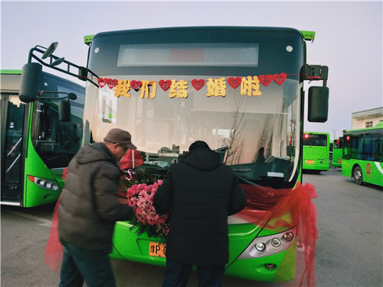 “這個(gè)想法是我和我媳婦一起商量出來的。我們覺得別人結(jié)婚都是用婚車,有點(diǎn)千篇一律。我們作為公交人就想另辟蹊徑,用我們公司的公交車當(dāng)婚車,同時(shí)也倡導(dǎo)綠色出行,還很有紀(jì)念意義?!?新郎買亞飛告訴記者。